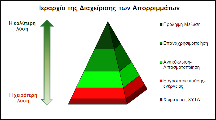 Με βάση τα πορίσματα της επιστήμης παγκόσμια, υπάρχει μια ιεραρχία των μεθόδων διαχείρισης των απορριμμάτων, που αναδεικνύει τις λύσεις που ωφελούν τις τοπικές κοινωνίες, σύμφωνα με την οποία οι καλύτερες μέθοδοι κοινωνικά – οικονομικά – περιβαλλοντικά είναι με σειρά ιεράρχησης: