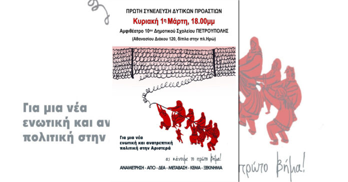Κυριακή 1/3: Πρωτοβουλία για μια νέα ενωτική και ανατρεπτική Αριστερά – Συνέλευση Δυτικών Προαστίων