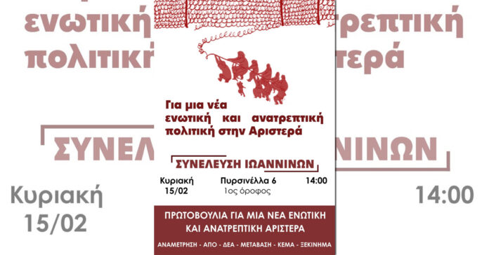 Η ιδρυτική συνέλευση των Ιωαννίνων θα γίνει την Κυριακή 15/02, στις 14:00, στην Πυρσινέλλα 6, 1ο όροφο.