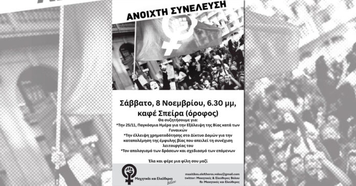 Μαχητικές και Ελεύθερες Βόλου: Ανοιχτή συνέλευση Σάββατο 8/11