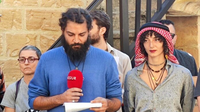 Athina and Rüyam from NEDA -New Internationalist Left (Internationalist Standpoint in Cyprus), are discussing with Hasan Rahvancioglu, a Turkish Cypriot conscientious objector in northern Cyprus.