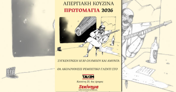 Δράση Παρασκευή 1/5, Θεσ/νίκη: Απεργιακή Κουζίνα στο Τακίμ! Ξεκίνημα 30/04/2026 Συγκέντρωση 10:30 π.μ. – Ολύμπου & Αμύντα Θα ακολουθήσει ρεμπέτικο γλέντι στο ΤΑΚΙΜ #ΘεματικέςΑπεργιακή κουζίναΘεσσαλονίκηΤΑΚΙΜ Ακολουθήστε το «Ξ» στο Google News για να ενημερώνεστε για τα τελευταία άρθρα μας.Μπορείτε επίσης να βρείτε αναρτήσεις, φωτογραφίες, γραφικά, βίντεο και ηχητικά μας σε facebook, twitter, instagram, youtube, spotify.Ενισχύστε οικονομικά το xekinima.org FacebookTwitterWhatsAppViberEmail διαβάστε επίσης: Antifa Fest στην Πετρούπολη: μια πολύ πετυχημένη δράση του Αντιφασιστικού Συντονισμού 27/04/2026 ΔΥΠΑ: Επί χρόνια συμβασιούχοι στον δρόμο, όργιο ρουσφετολογικής αντίληψης 25/04/2026 Για τον Ιμπεριαλισμό – οι απόψεις του «Ξ» 25/03/2026 Αμερική εναντίον Ιράν: παγιδευμένη στην αλαζονεία του Τραμπ; 20/03/2026 Δίκη Χρυσής Αυγής: Τελεσίδικη καταδίκη της ναζιστικής εγκληματικής οργάνωσης 04/03/2026 Να σταματήσει η αμερικανο-ισραηλινή επίθεση στο Ιράν! 02/03/2026 7,273ΥποστηρικτέςΚάντε Like990ΑκόλουθοιΑκολουθήστε1,118ΑκόλουθοιΑκολουθήστε448ΣυνδρομητέςΓίνετε συνδρομητής Επίκαιρες θεματικές #τέμπη #AntifaCon2025 #παλαιστινιακό #ΗΠΑ #Αντιφασιστικός_Συντονισμός_Αθήνας–Πειραιά Πρόσφατα άρθρα Οι δυτικές συνοικίες και η μάχη ενάντια στην επανεμφάνιση των νεοφασιστών 30/04/2026 Πρωτοβουλία για μια Νέα, Ενωτική και Ανατρεπτική Αριστερά: 1η Μάη – Όλες... 30/04/2026 Χωματερή STOP: Όχι στη νέα επέκταση του ΧΥΤΑ Φυλής & την... 29/04/2026 Τα γεγονότα του Μάη του ’36 στη Θεσσαλονίκη: Άλλη μια προδομένη... 29/04/2026 Βουλγαρία: ανατροπή της τελευταίας στιγμής στο εκλογικό αποτέλεσμα 28/04/2026 Ελάτε σ' επαφή με το «Ξ» !