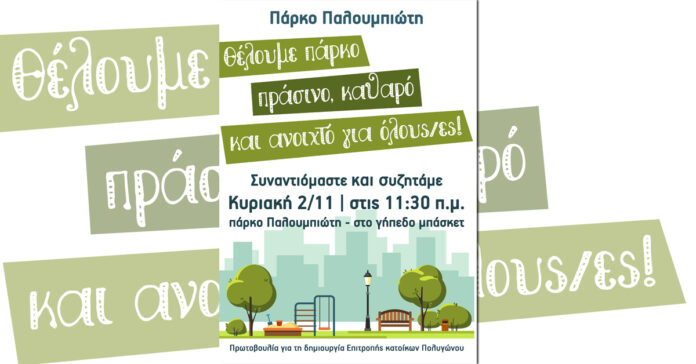 Την Κυριακή 2 Νοέμβρη, στις 11:30, στο πάρκο (στο χώρο του μπάσκετ), κάτοικοι του Πολυγώνου βρισκόμαστε να συζητήσουμε πως μπορεί να αλλάξει αυτή η κατάσταση.