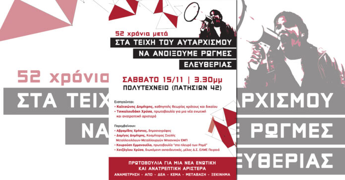 Εκδήλωση: 52 χρόνια μετά – Στα τείχη του αυταρχισμού να ανοίξουμε ρωγμές ελευθερίας
