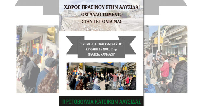 Θεσ/νίκη, Κυριακή 16/11: Συζήτηση – Συνέλευση των κατοίκων στην Αλυσίδα