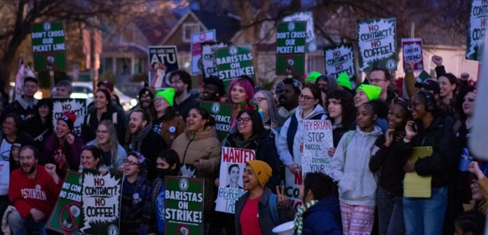 Since the first stunning victories in Buffalo, NY, the union drive to organize Starbucks stores in the US has been an inspiration for the labor movement. Over the last years, young workers have expanded the campaign nationally with strikes, actions, and shop-to-shop organizing. The drive has shown exceptional rank-and-file energy and leadership, while also pioneering organization in a sector with almost no history of a union presence. From this past November to February Starbucks workers organized their largest sustained national strike yet.