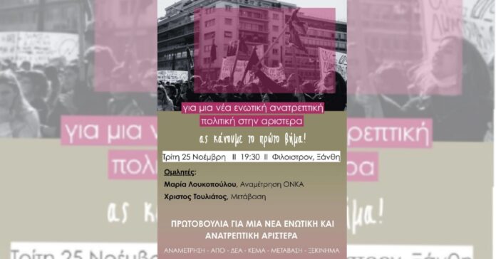 Δημοσιεύουμε κάλεσμα της Πρωτοβουλίας για μία νέα ενωτική και ανατρεπτική Αριστερά (Αναμέτρηση, ΑΠΟ, ΔΕΑ, ΚΕΜΑ, ΜΕΤΑΒΑΣΗ, ΞΕΚΙΝΗΜΑ).